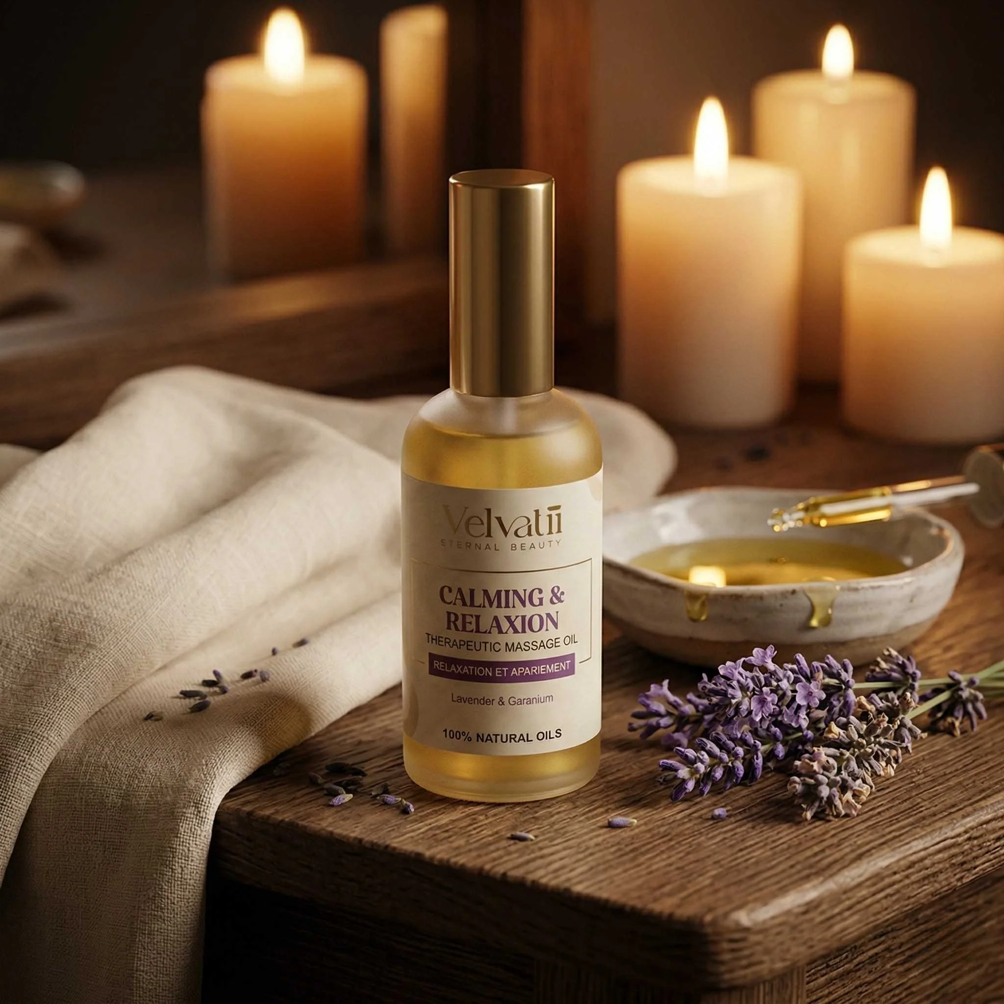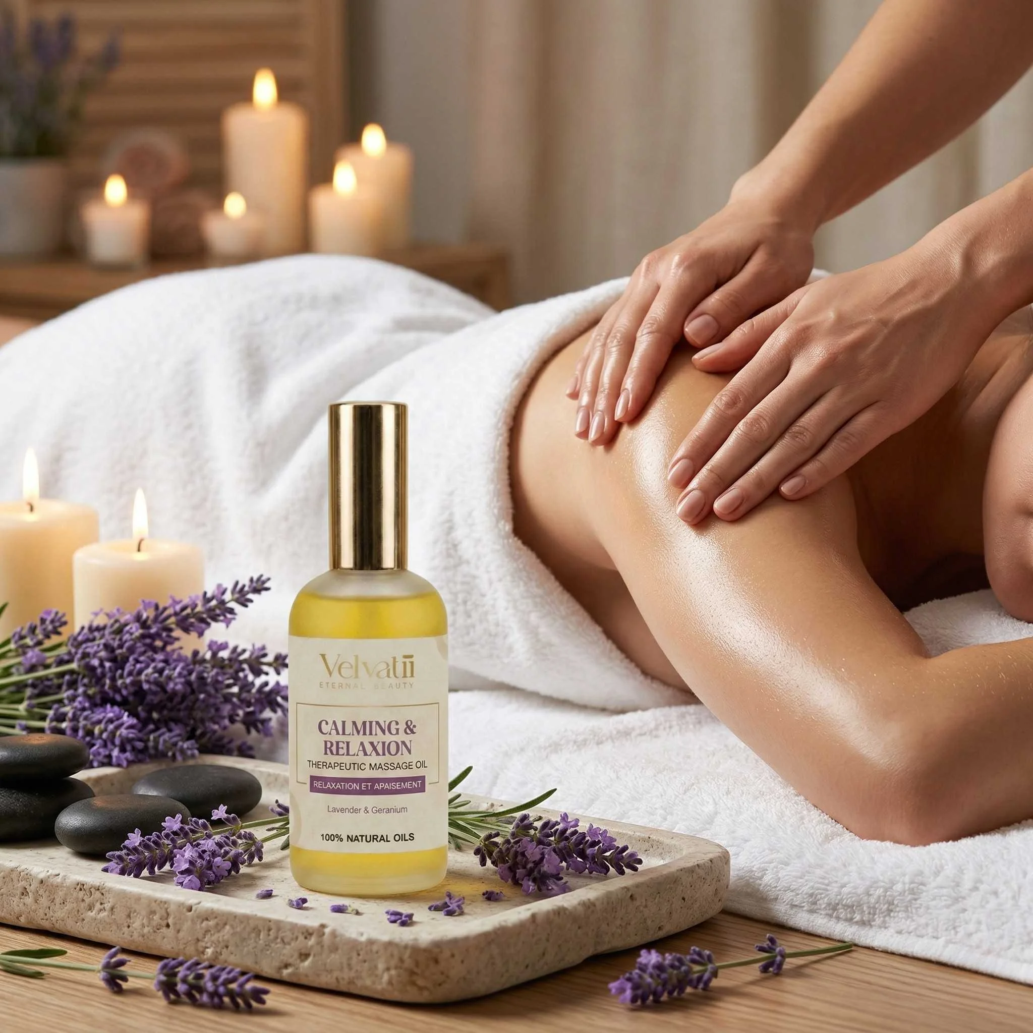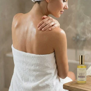 Notre mélange harmonieux d’huile d’Argan certifiée biologique pressée à froid, d’huiles d’abricot et d’amande douce, est infusé d’un mélange doux et luxueux d’huiles essentielles pures. Les huiles de lavande et de géranium procurent un arôme paisible et relaxant, laissant la peau hydratée, extrême- ment douce et délicatement parfumée.