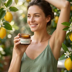 No aluminium salts and alcohol, which keeps you away from having dark pits. Great lemony scent is perfectly suitable for delicate skin.