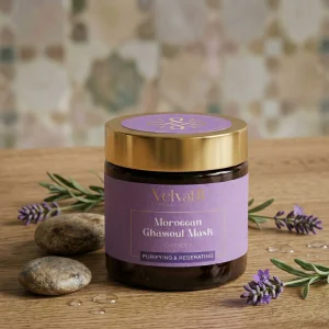Velvatii Ghassoul Clay is an exceptional clay with multipurpose assets. It is mined in the fertile Atlas Mountains of Morocco.Capacity of absorption due to its high level of ions exchange.It reduce dryness and flakiness, improve skin clarity and elasticity.Rich in magnesium, Silica, potassium and calcium.